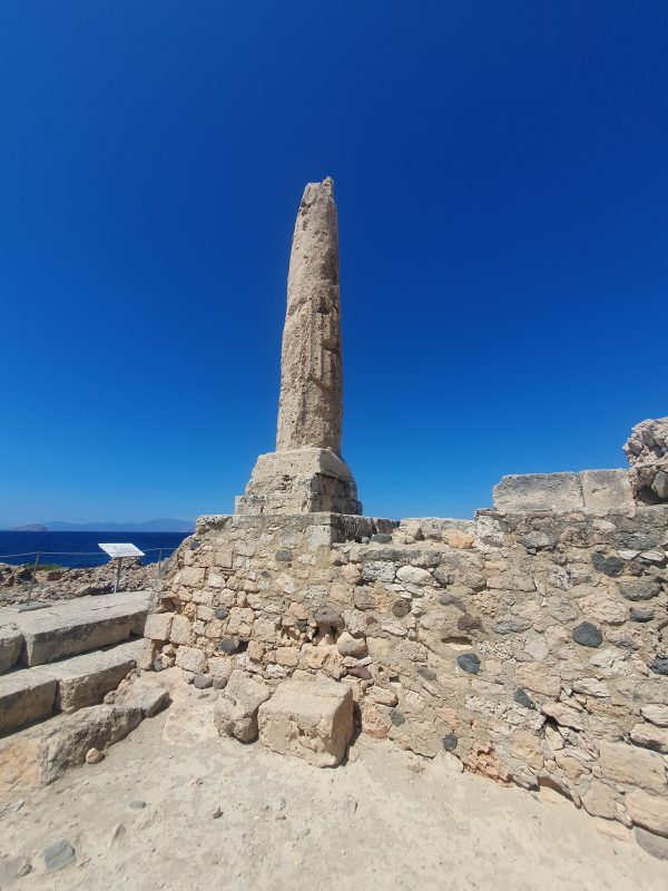 Από το άλλοτε θρησκευτικό και πολιτικό κέντρο του νησιού, σήμερα μεταξύ άλλων διασώζεται μία κολώνα (ύψους 8μ) που ανήκει στον αρχαϊκό ναό του Απόλλωνα από την οποία και πήρε το αξιοθέατο το όνομά του. Λέγεται μάλιστα ότι οι Βενετσιάνοι ναυτικοί χρησιμοποιούσαν τις κολώνες του Ναού του Απόλλωνα για προσανατολισμό.