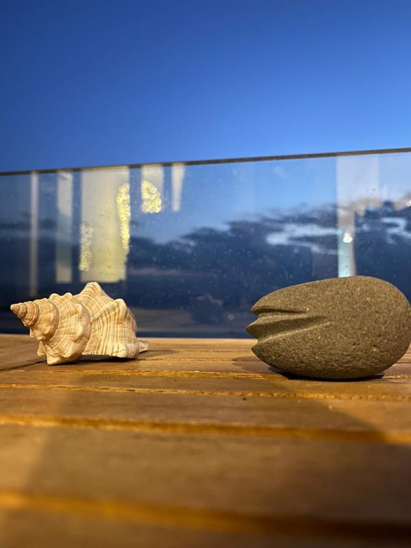 Ο καλλιτέχνης συνομιλεί με την αιγινήτικη πέτρα που πιάνει στα χέρια του, είτε είναι από το έδαφος είτε από τη θάλασσα, και της δίνει πνοή, μεταμορφώνοντας τη σε “ζώσα σάρκα”, όπως αναλύει χαρακτηριστικά η κριτικός τέχνης Ίριδα Κρητικού με αφορμή την έκθεση “Εργαλεία Πέτρας” του Παναγιώτη Μαρίνη στη Λάρισα, που εγκαινιάστηκε τον Ιούλιο στο Διαχρονικό Μουσείο της πόλης. Οι ασώματες κεφαλές του καλλιτέχνη μοιάζουν σαν “ψυχές” που κατάφεραν να απελευθερωθούν από την πέτρα, σαν χαρακτήρες με υπόσταση που έχουν αντέξει στον χρόνο και έχουν πολλά να μας πουν.