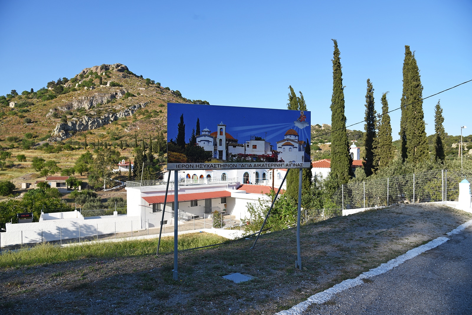 Το Μοναστήρι της Αγίας Αικατερίνης βρίσκεται στην κοιλάδα του Κόντου και περιβάλλεται από πολύ ψηλά κυπαρίσσια. Εδώ ήταν παλιότερα χτισμένος ο Ναός της Αφροδίτης. Είναι ένα μικρό Μοναστήρι στο οποίο ζουν μόλις 10 μοναχές. Βρίσκεται πολύ κοντά στο διάσημο Μοναστήρι του Αγίου Νεκταρίου, στα δεξιά του δρόμου όπως πηγαίνει για Σουβάλα.