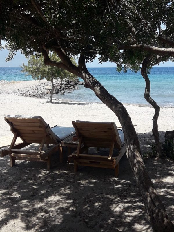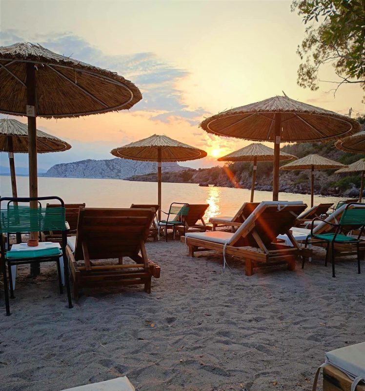 Η παραλία είναι οργανωμένη αλλά και άκρως περιποιημένη με ποιοτικές ξαπλώστρες σε καλή απόσταση η μία από την άλλη αλλά και ένα beach bar που προσφέρει δροσερές αλλά και γευστικές απολαύσεις από καφέ, χυμούς, αναψυκτικά και cocktails μέχρι snacks αλλά και φαγητό για όταν ανοίγει η όρεξη!