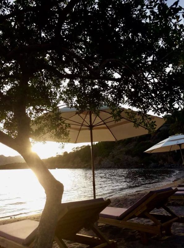 Το μέρος προσφέρεται και για ηλιοβασίλεμα αφού ο ήλιος πέφτει σχεδόν μέσα στην θάλασσα βάφοντας όλο το κολπάκι μέχρι το απέναντι νησάκι της Μονής με τα πιο ζεστά του χρώματα. Η εικόνα συμπληρώνεται από το ίδιο το φυσικό σκηνικό της παραλίας με τα πανύψηλα βράχια και τα δέντρα του να σε μαγεύουν με την ομορφιά τους.