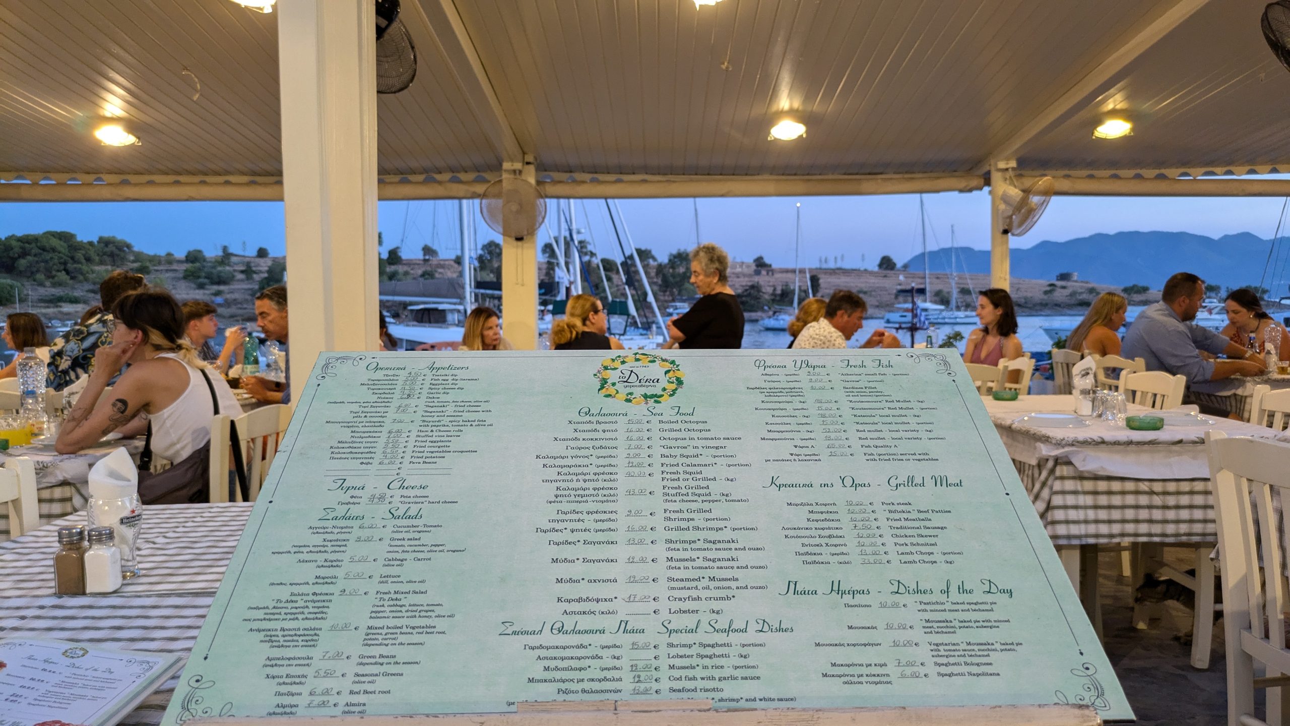 Aπό το μεσημέρι ξεκινούν να σερβίρονται τα μαγειρευτά της μαμάς, κρεατικά της ώρας, δημιουργίες με φρέσκο ψάρι που ψαρεύεται στον Αιγινήτικο βυθό αλλά και θαλασσινά. Εμπιστεύσου τον Γιάννη, μάστορα στο ψήσιμο, και αν θέλεις να γευτείς μόνο το “εύκολο κομμάτι”, ζήτησε να σου φέρουν τα ψάρια ξεκοκαλισμένα! Έτσι και δε θα ταλαιπωρηθείς και θα πάρεις όλα τα θετικά του ψαριού (από γεύση μέχρι υγεία)!