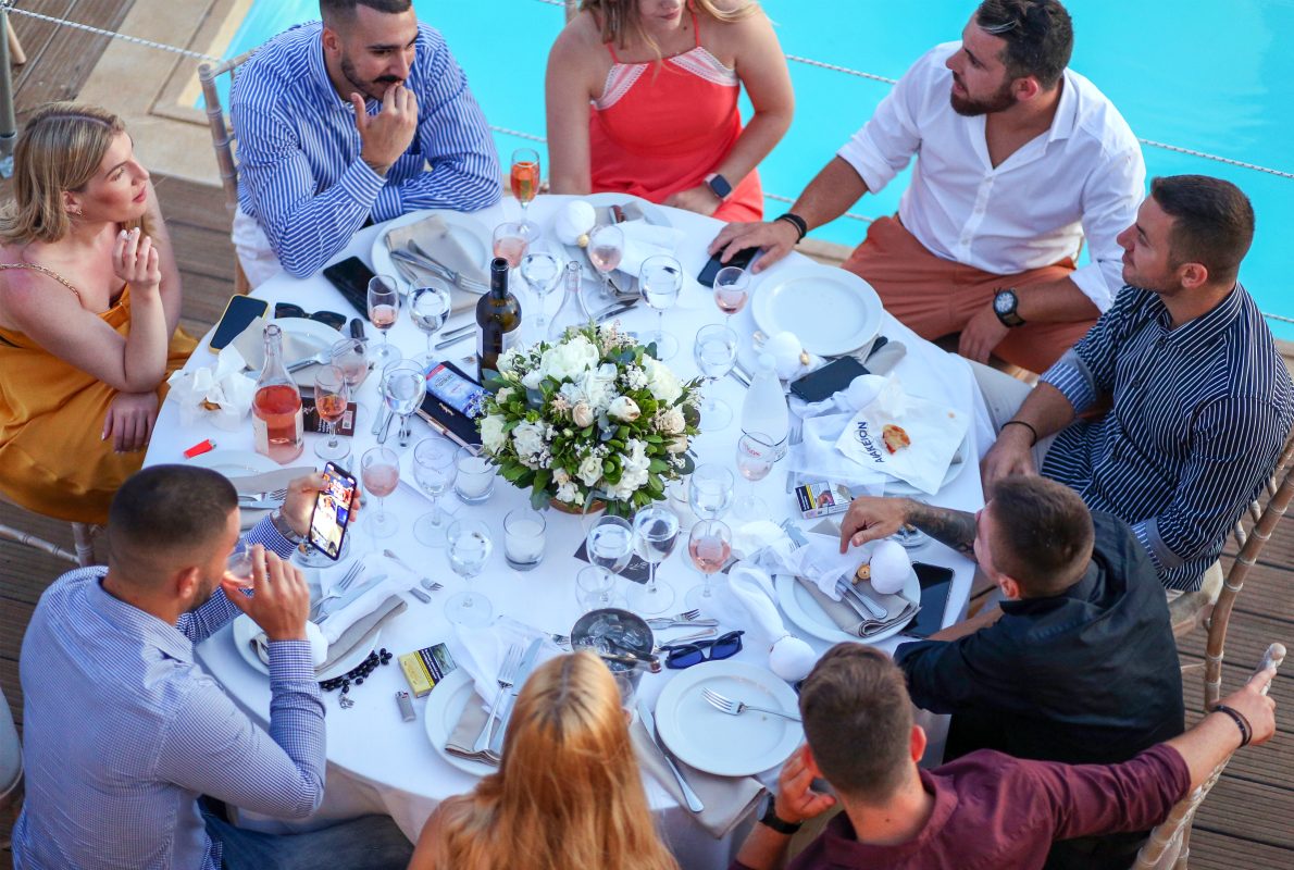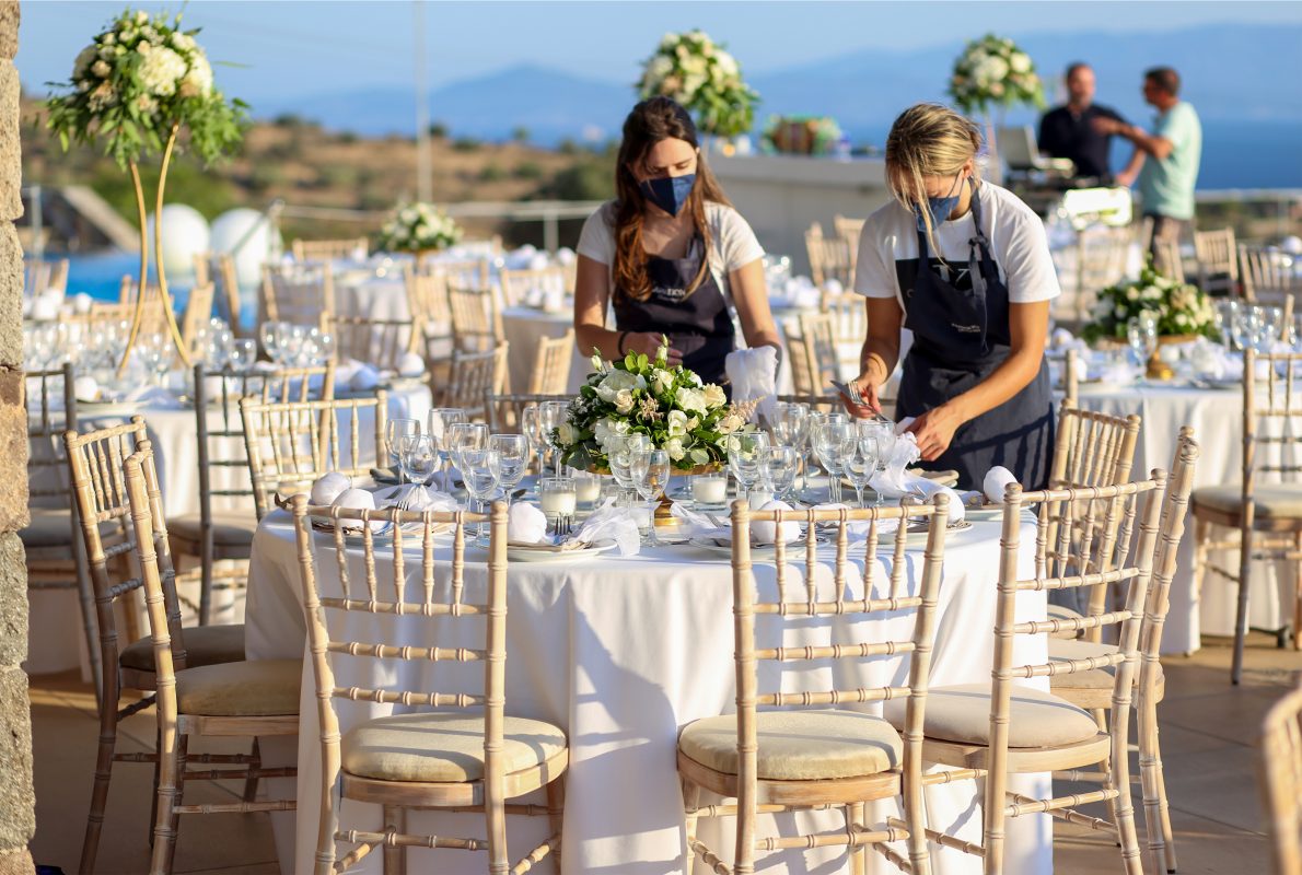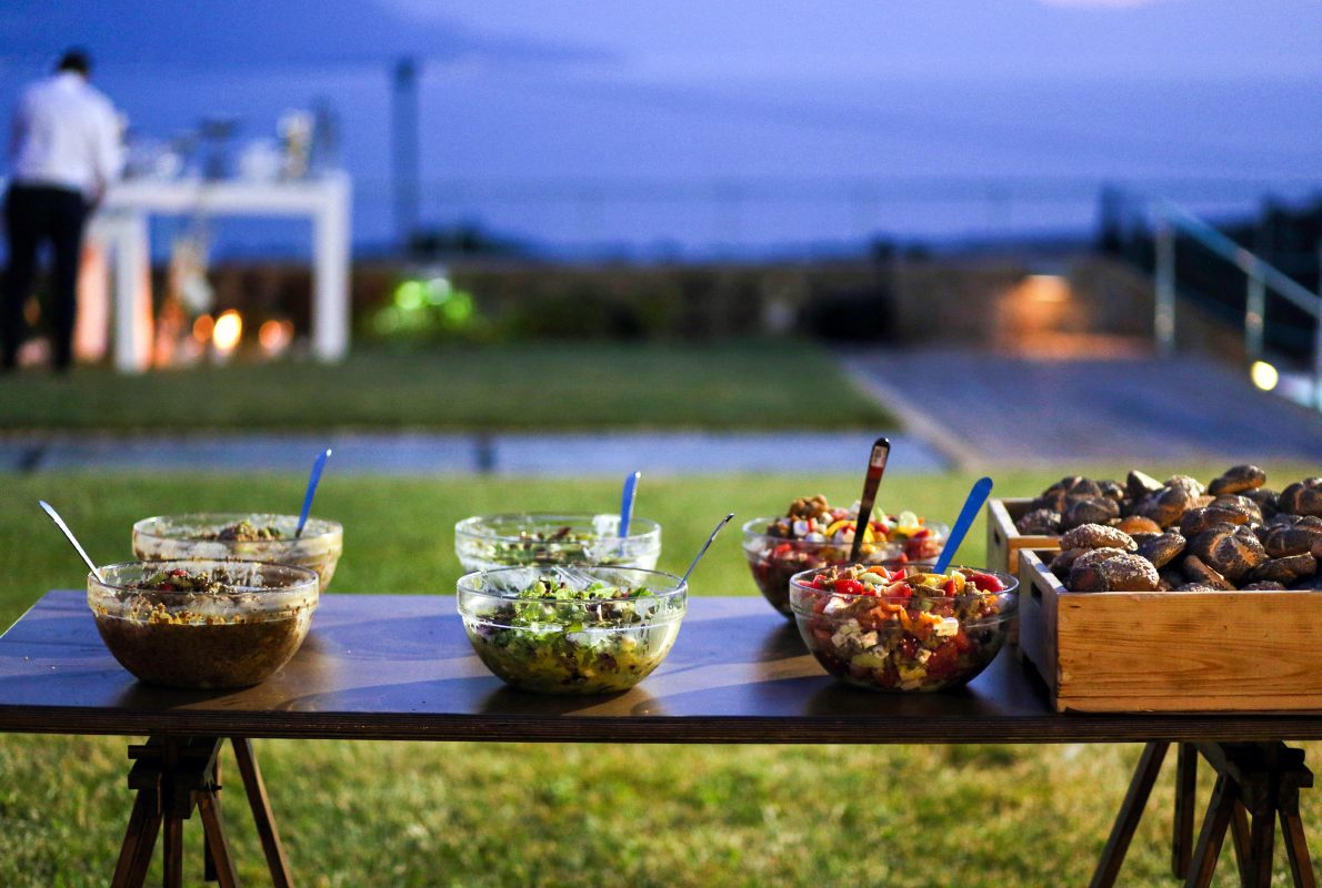 Imaginative and creative, the menu and the way it is served create unforgettable memories for all guests. Impress your loved ones by choosing live cooking during the event and get inspired with creative suggestions, such as fish cooked in salt. Your guests will be amazed as Aiakeion Catering’s staff breaks the fish crust in front of them!