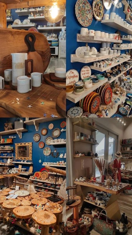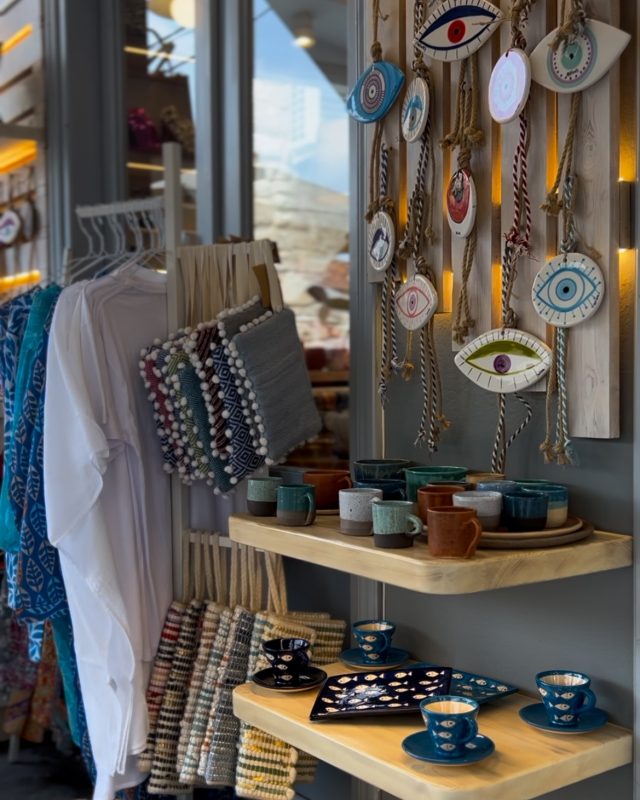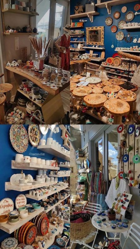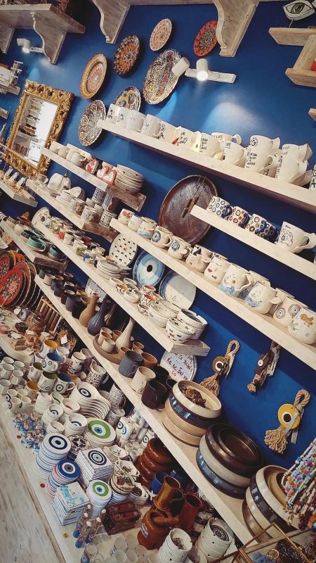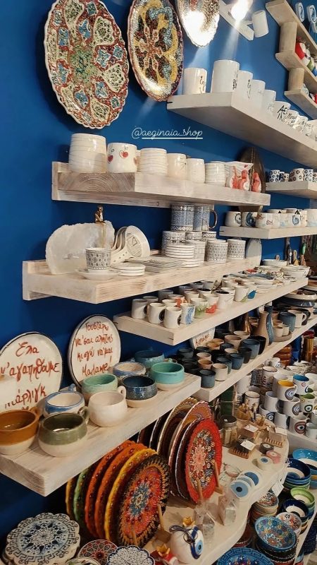 Just 5′ (on foot) away from the harbour, Aeginaia shop is your ideal stop before leaving Aegina.