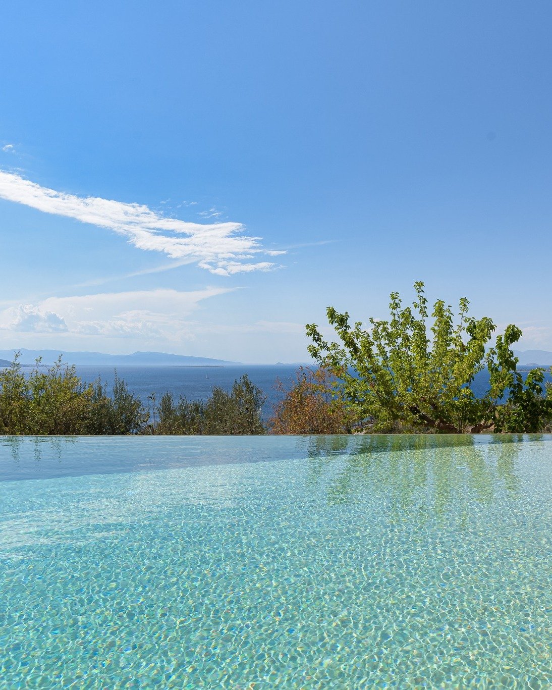 Mary, Vasso and Aegina’s infinite blue welcome you to Aelia Villas, a complex of two amazing villas, Aelia and Melitta, nestled in a sun-kissed sea view paradise of 16000m2, surrounded by olive trees, orange trees and colorful flowers.