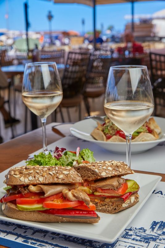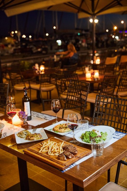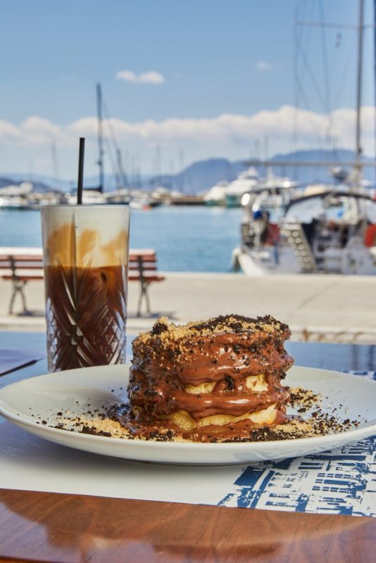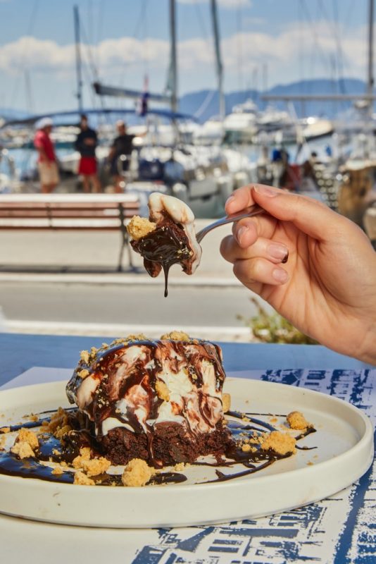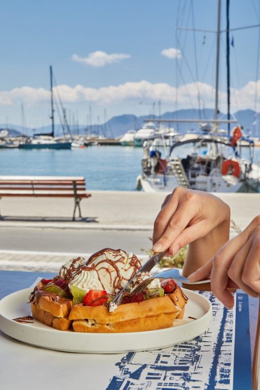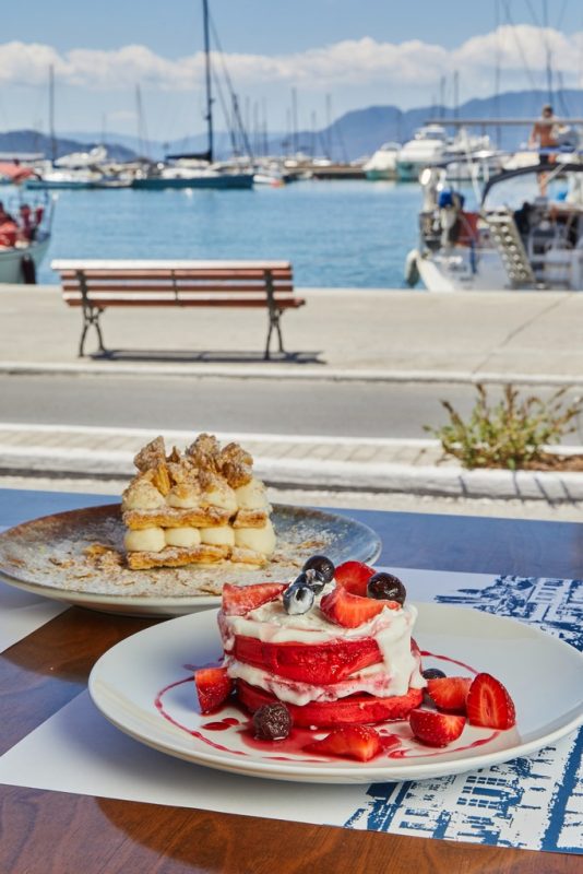 Aiakeion Patisserie Restaurant offers plenty of reasons to visit it all day long. You will enjoy premium coffee varieties, brunch with eggs cooked any way you like them, sandwiches, superfoods, served either at his famous tables on the beach or at the romantic atrium overlooking the harbor, definitely worth visiting during the summer months.