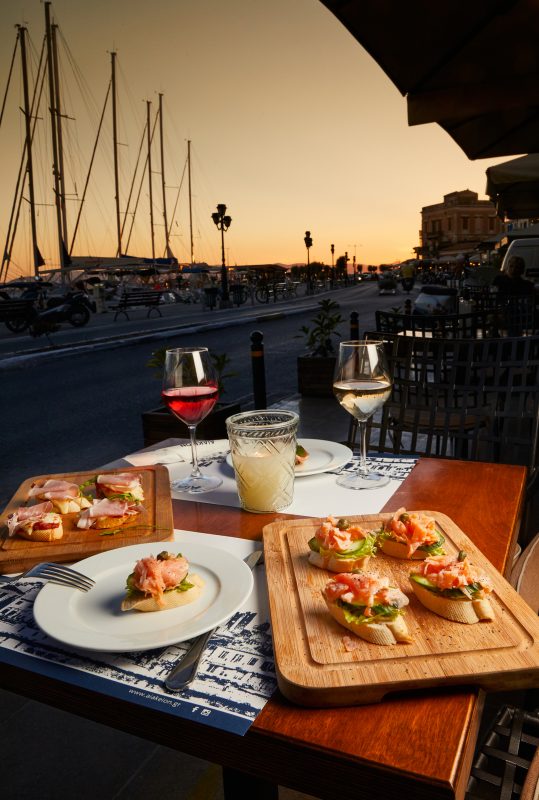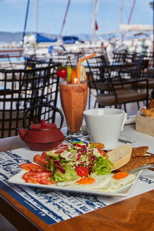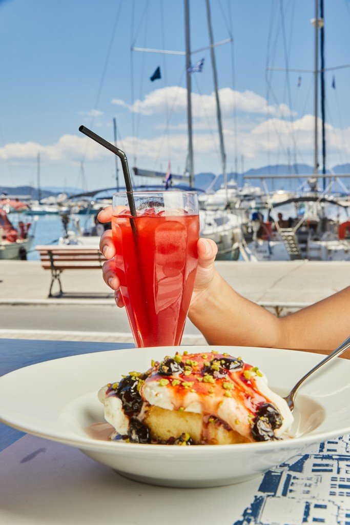 Aiakeion Patisserie Restaurant offers plenty of reasons to visit it all day long. You will enjoy premium coffee varieties, brunch with eggs cooked any way you like them, sandwiches, superfoods, served either at his famous tables on the beach or at the romantic atrium overlooking the harbor, definitely worth visiting during the summer months.