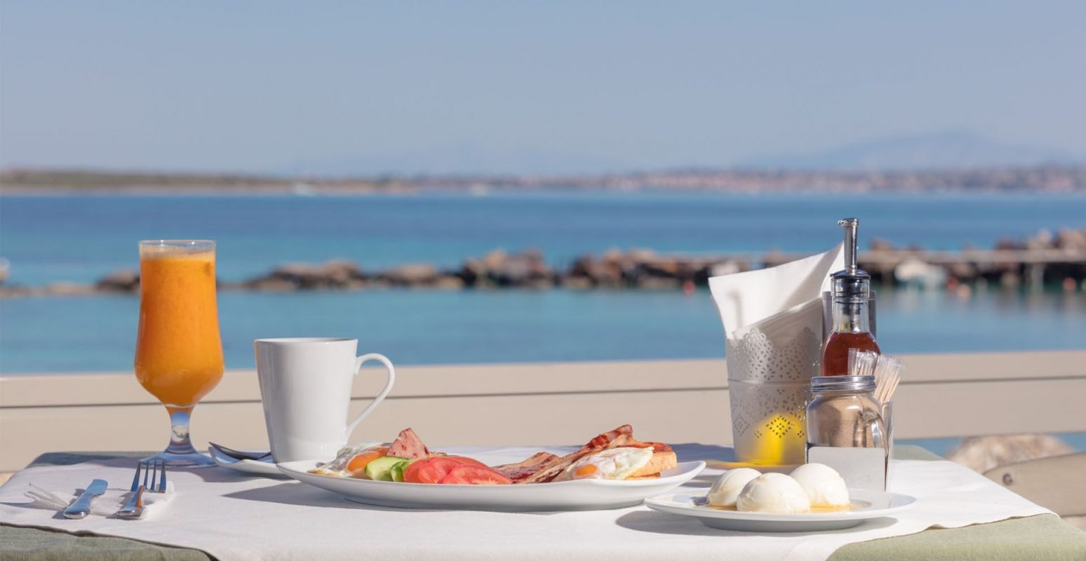 At the Aktaion Beach Boutique Hotel’s all-day restaurant in Agistri, guests enjoy Greek cuisine with traditional flavors, selected local ingredients, and extra virgin olive oil. The day starts with a rich buffet breakfast with savory and sweet treats, continues with snacks, sandwiches, and salads in the restaurant lounge, on the sandy beach, or in the pool of Aktaion, and ends perfectly with an aperitif at sunset. With a maximum capacity of 200 people, the beautiful space of the restaurant is excellent for parties and events (weddings, baptisms, or business conferences in Agistri).