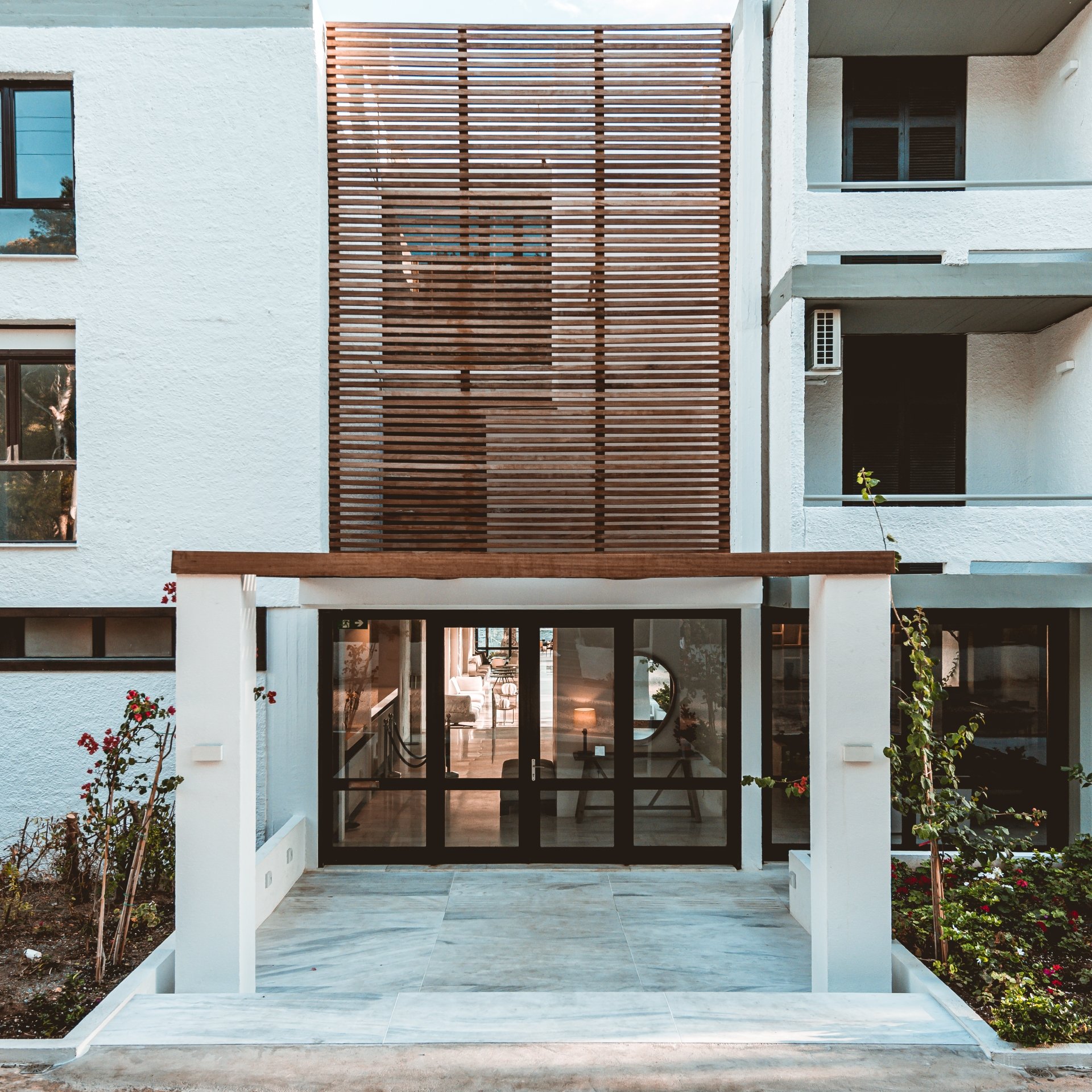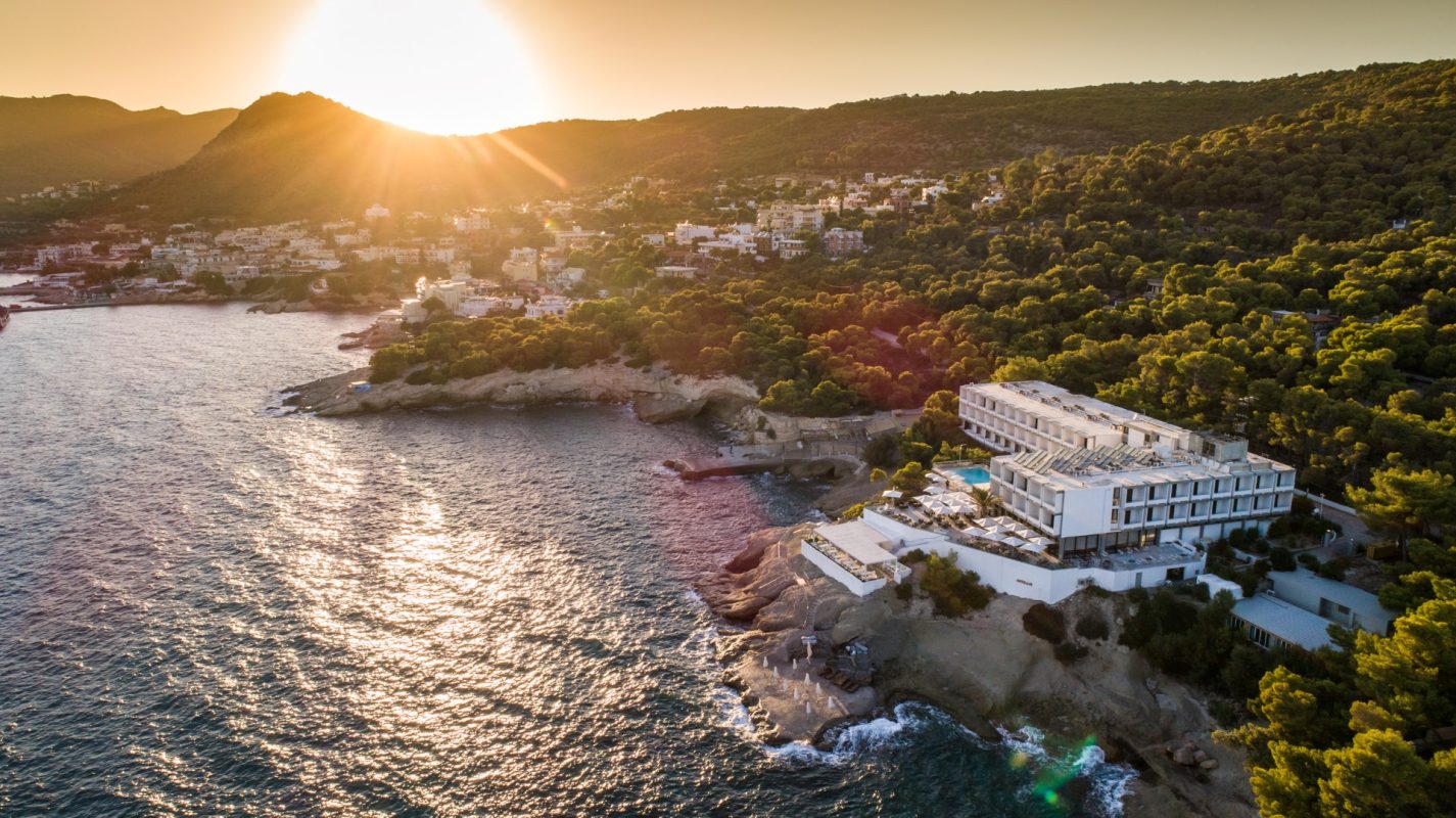 The completely renovated Apollo Resort balances its elegant, simple, ‘70s-inspired architectural line between the natural beauty of the dense pine forest and the blue open skyline. It is located on the shoreline of a green bay in Agia Marina and has direct access to the sea. Apollo Resort offers 240 beds in elegant rooms with unobstructed views of the Saronic Gulf.