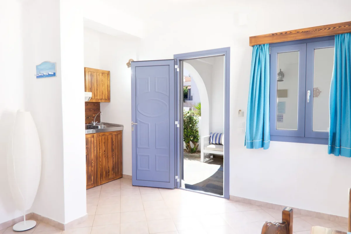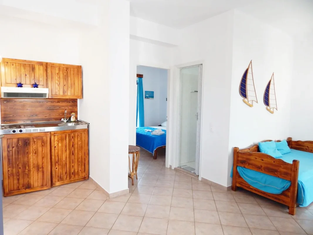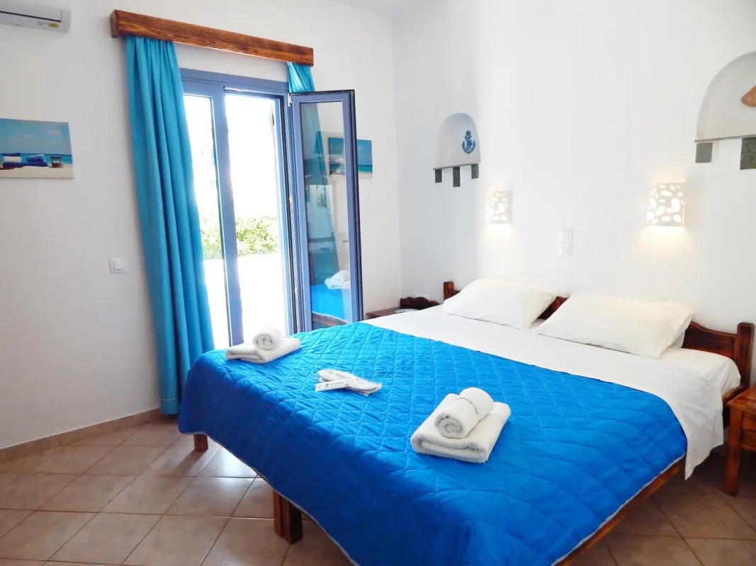 Dressed in white and blue, the Aquarius Village Agistri complex is fully equipped with double, triple, and quadruple rooms, most with a kitchenette, with an island atmosphere and style, just like you would like your summer vacation to be!