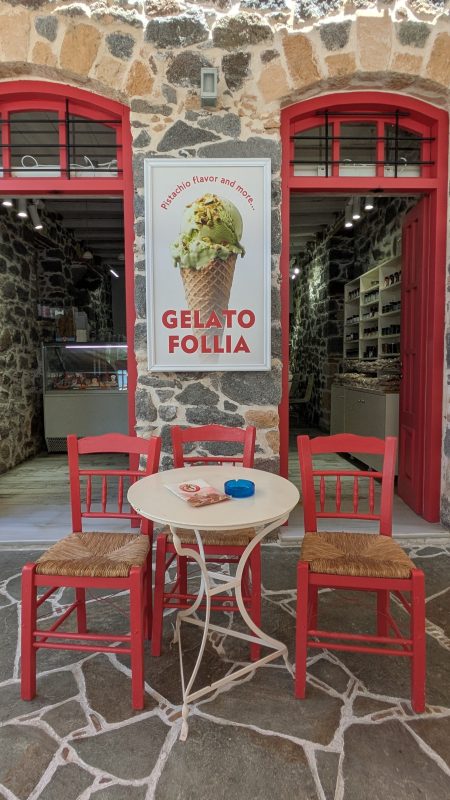 Now at Gelato Follia, you’ll find more than just ice cream! They’re serving up a delicious variety of pistachio products and traditional Greek spoon sweets, including whole pistachios, pistachio praline, and pistachio butter!