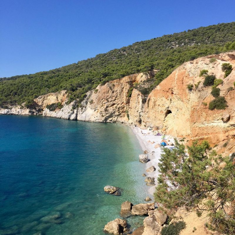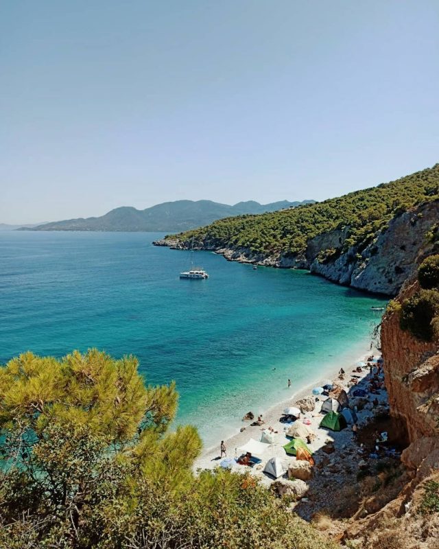 Halikiada beach is like a hidden treasure: it needs effort to discover but then it compensates you! Halikiada beach is a beautiful, secluded bay accessible only through a rough path that adds a degree of difficulty when ascending and descending.