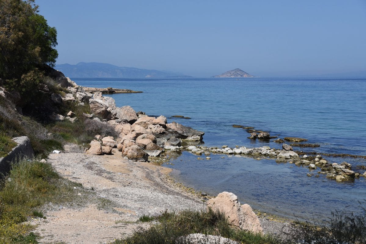 A beach found only a few kilometers from the port of Aegina, at half the distance towards Souvala to the north, barren, ideal for lonesome characters (although it once was cosmopolitan). An option if you’re a fan of the wild, original beauty of places and want to move away from the more popular options.