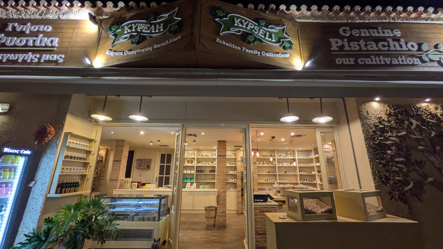 Kypseli, the beautiful pistachio shop of Aegina, next to the historic “Vogiatzis” building just outside Aegina’s port, welcomes you daily offering you products of the highest quality.