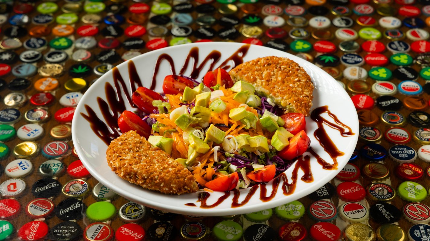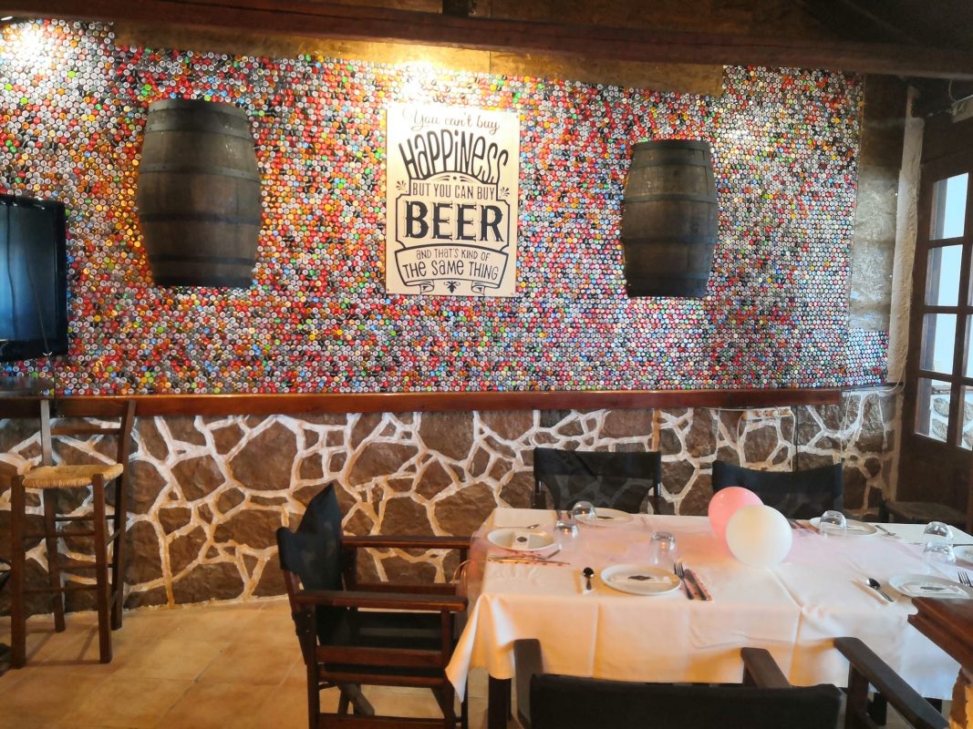 Apart from the excellent food, the interiors of the beer house are also amazing, curated by Chrysostomos, who has decorated the wall with hundreds of beer caps and has created a lamp from a beer bottle!