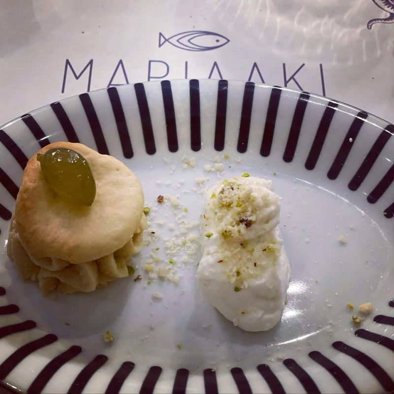 Here you will taste delicious, big fishes from the fishermen of Aegina, traditional dishes with a modern touch as well as delicious stews, for which Maridaki is famous. Some of the special dishes that we have tried and that have delighted us are the shrimp carbonara, the sautéed scallops, the octopus carpaccio, the mullet tartare, the salmon fillet with glaze, miso and mash puree, the Australian ribeye and their wonderful “Maridaki” salad ( with sauteed shrimp, avocado, cherry tomatoes, pesto, pickled cucumber, capers, green oil). From their cooked dishes, we strongly recommend the octopus with macaroni, but you should also advice the chef on what he recommends from the cooked dishes of the day!