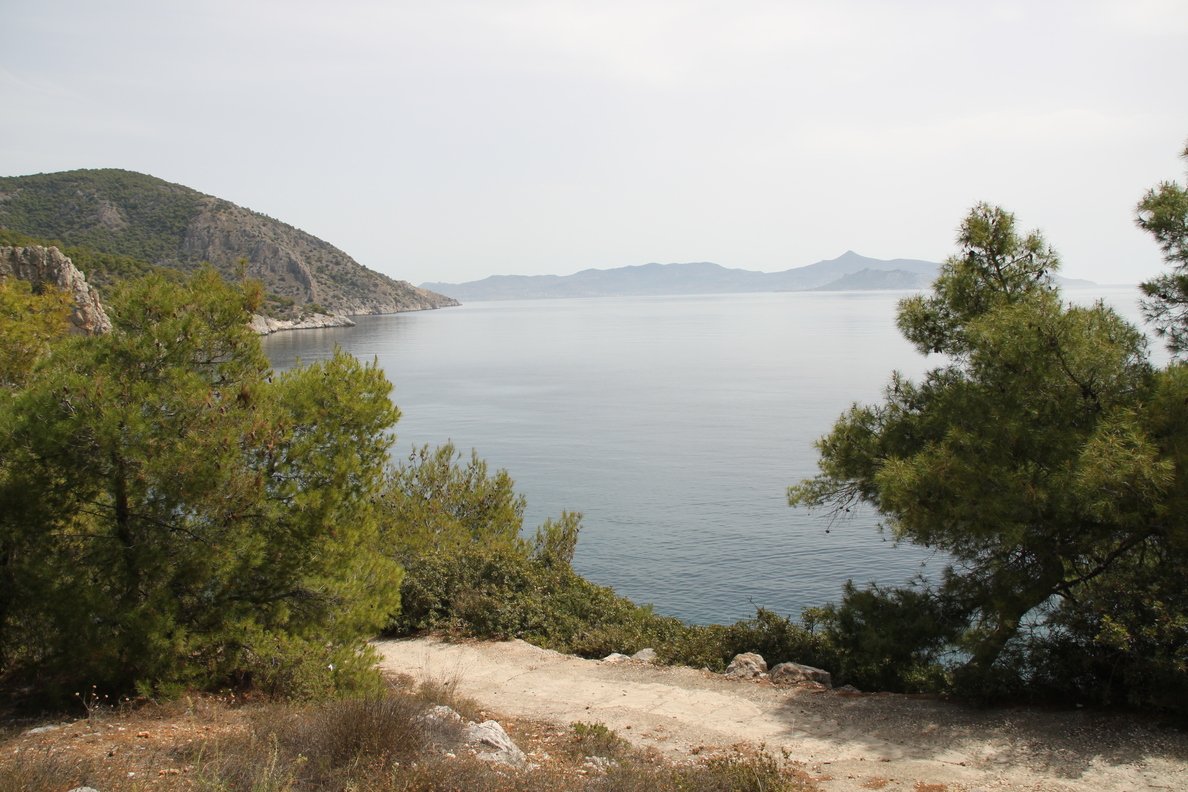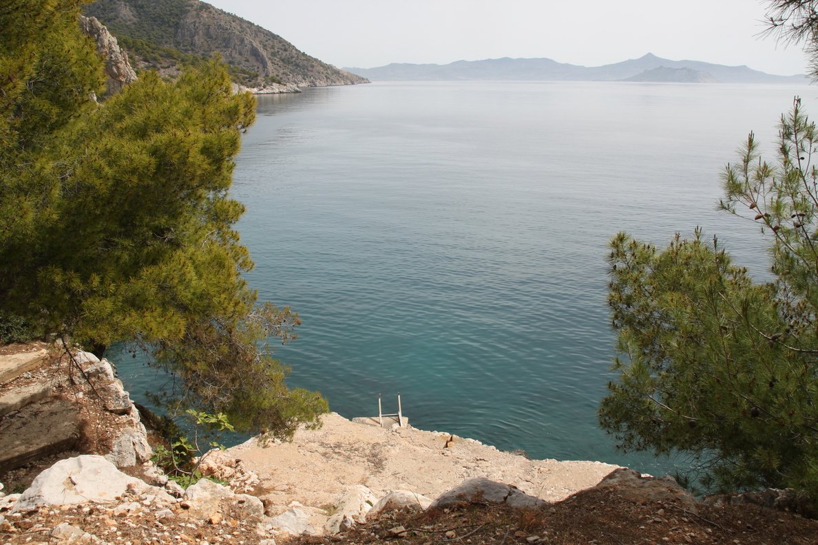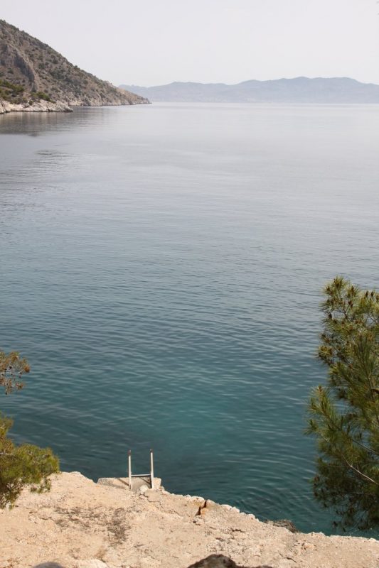 Mariza beach is basically not a beach! It is a wide rocky platform ideal for diving in deep turquoise waters. It is a pleasant surprise, a beautiful secret as it unfolds through the dense forest vegetation in this part of Agistri.