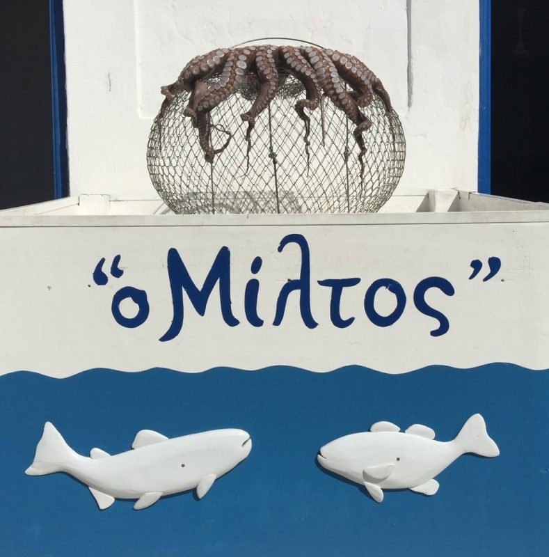 Miltos Fish Tavern is proud of its sun-dried coal-grilled octopus meze, so mouthwatering that if you taste it you can’t forget it! Other dishes you should definitely try is the grilled stuffed squid, the feta cheese with sesame and honey, the finely chopped zucchini and the steamed mussels. You can’t leave without tasting the fresh fish of the day and order the local fish “katsoules”, fagri or sea breams.