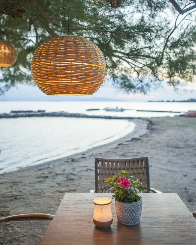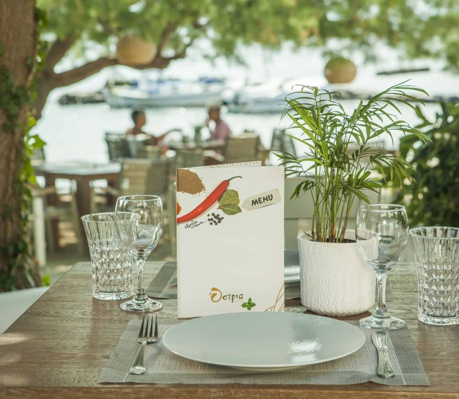 At Ostria Restaurant you will enjoy ouzo and Greek meze, homemade Greek cuisine with supplies from the Marmarinos family garden, fresh fish from the fishing boats of Aegina, grilled meats, village pies, homemade desserts and new delights every day. All this is served with a smile at the minimal tables with wicker chairs, placed on the sand right on the sea, giving flavor to our holidays on the island.