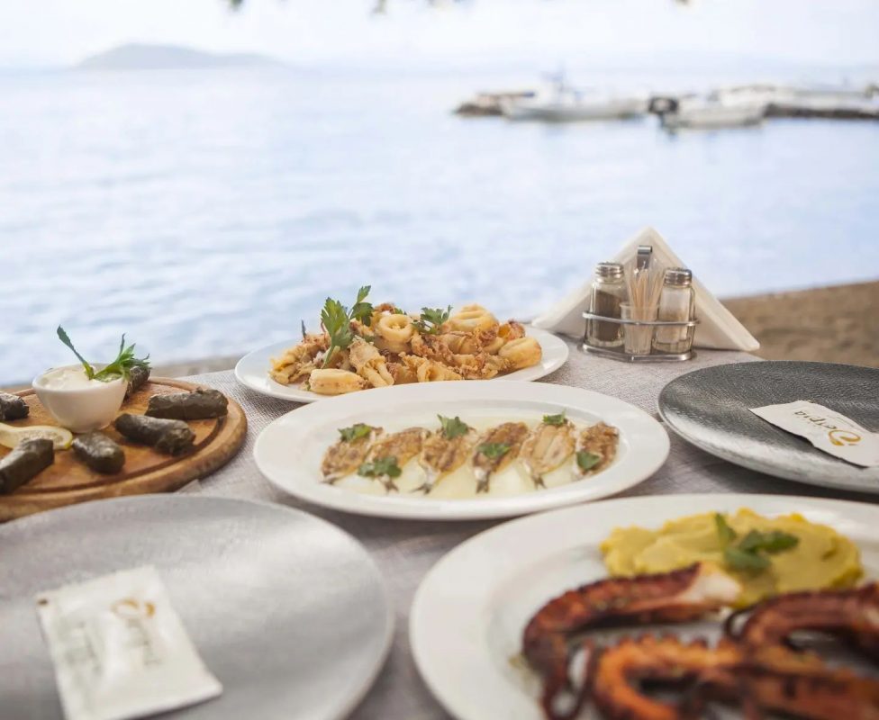Another advantage of Ostria restaurant is that you can choose to sit at its tables placed literally on the sand, next to the seashore. Let your children play in the water and enjoy a good swim until the food is served… the ultimate summer experience.