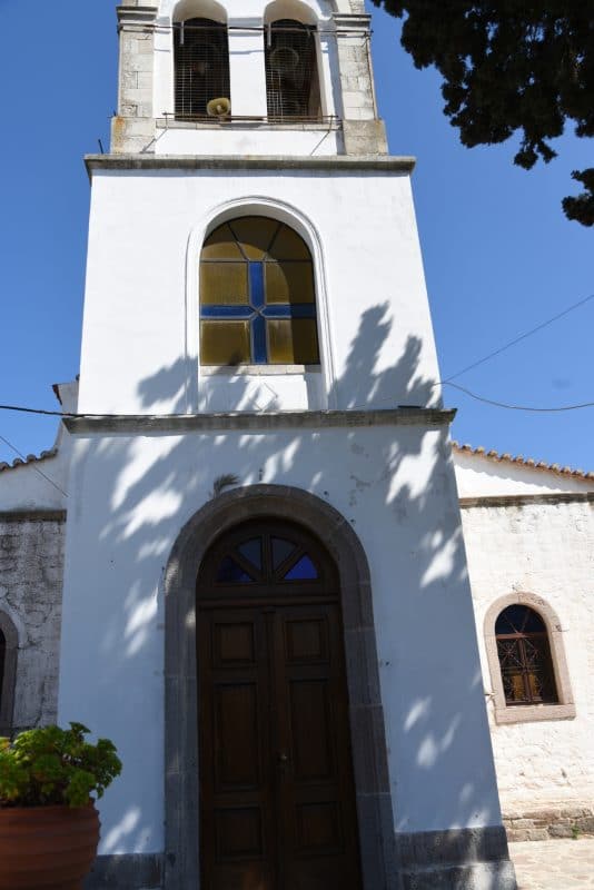 - The church of Agios Dionysios is distinguished by the big bell tower, the blue dome and its sacramental atmosphere. It is no coincidence that so many people choose to hold here their rituals of passage (wedding, baptism).