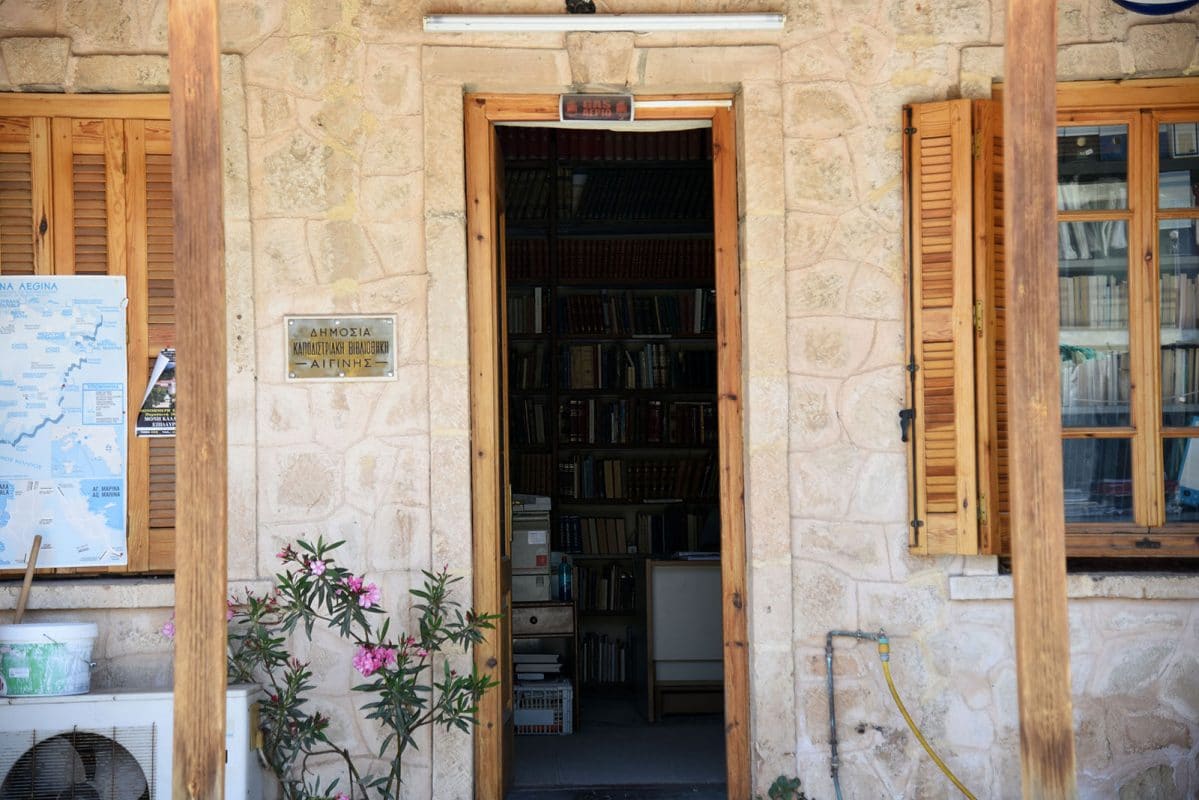 Following the road to the Cathedral of Aegina, next to the Governor’s House building, you will find the Public Library of Aegina (a 1948 stone building).
