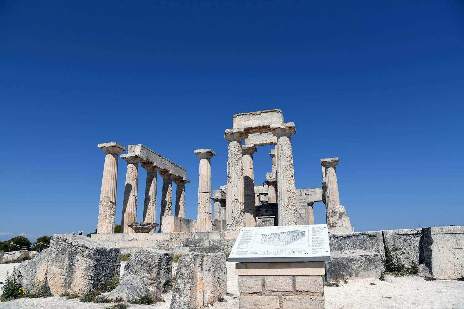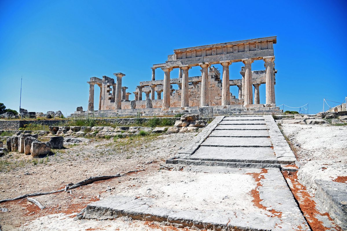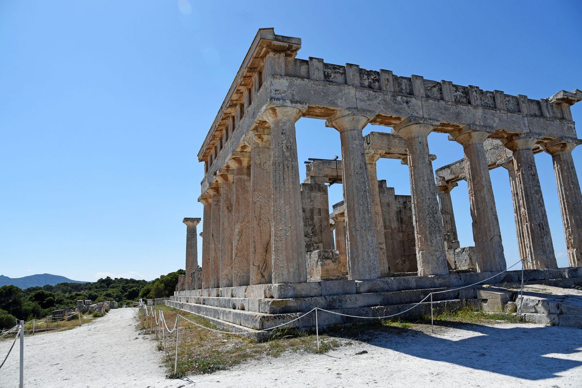 The temple is 15km away from the capital of Aegina (2km east of Mesagros) and was built between 500-490 BC on top of the previous temple, which suffered damages after a fire in 510 BC. The Aegineans therefore decided to tear it down- while keeping the gate and the large altar – and rebuild a new one that would display the works of the “Aeginean” School of sculpture. The new temple took its final form in 500 BC and is an excellent sample of archaic architecture.