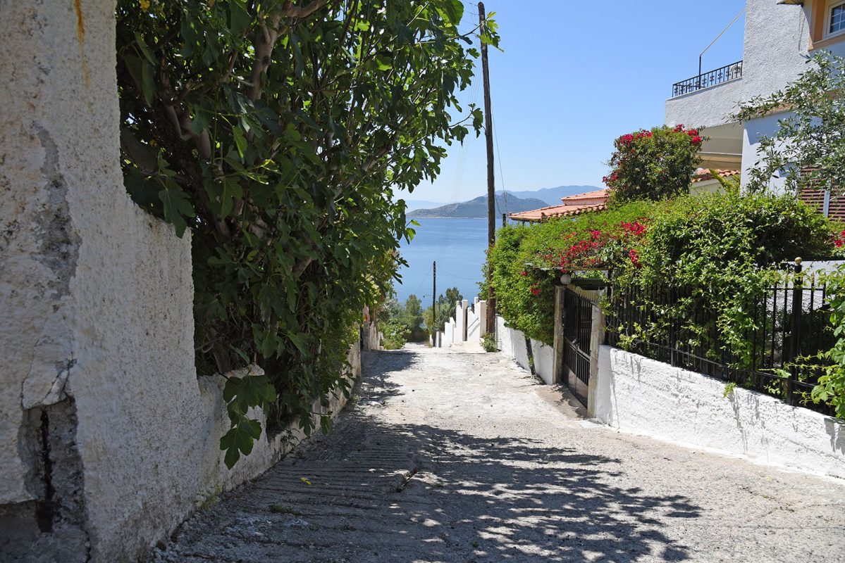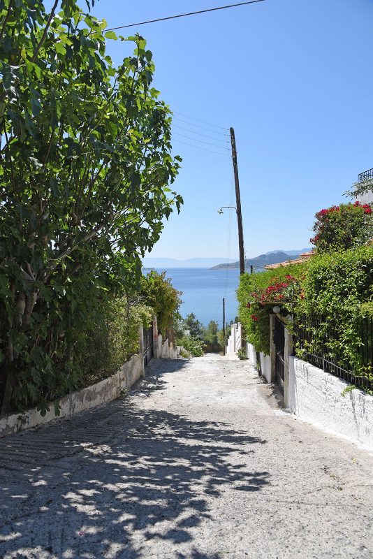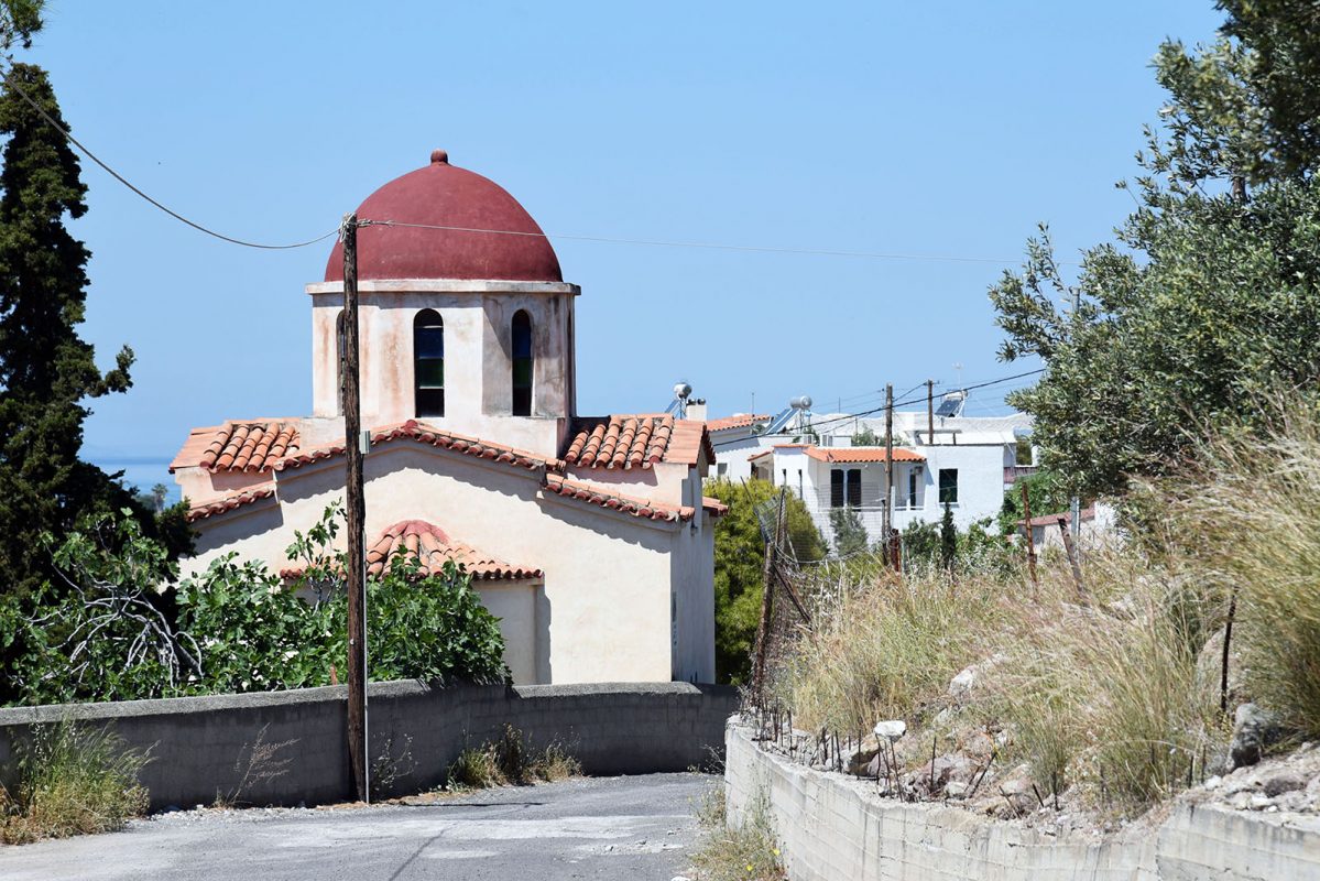 This particular settlement is built on the hill on the left side of the coastal road; it consists of a small number of houses, all overlooking the light-filled and colorful sea on the west side of the island.