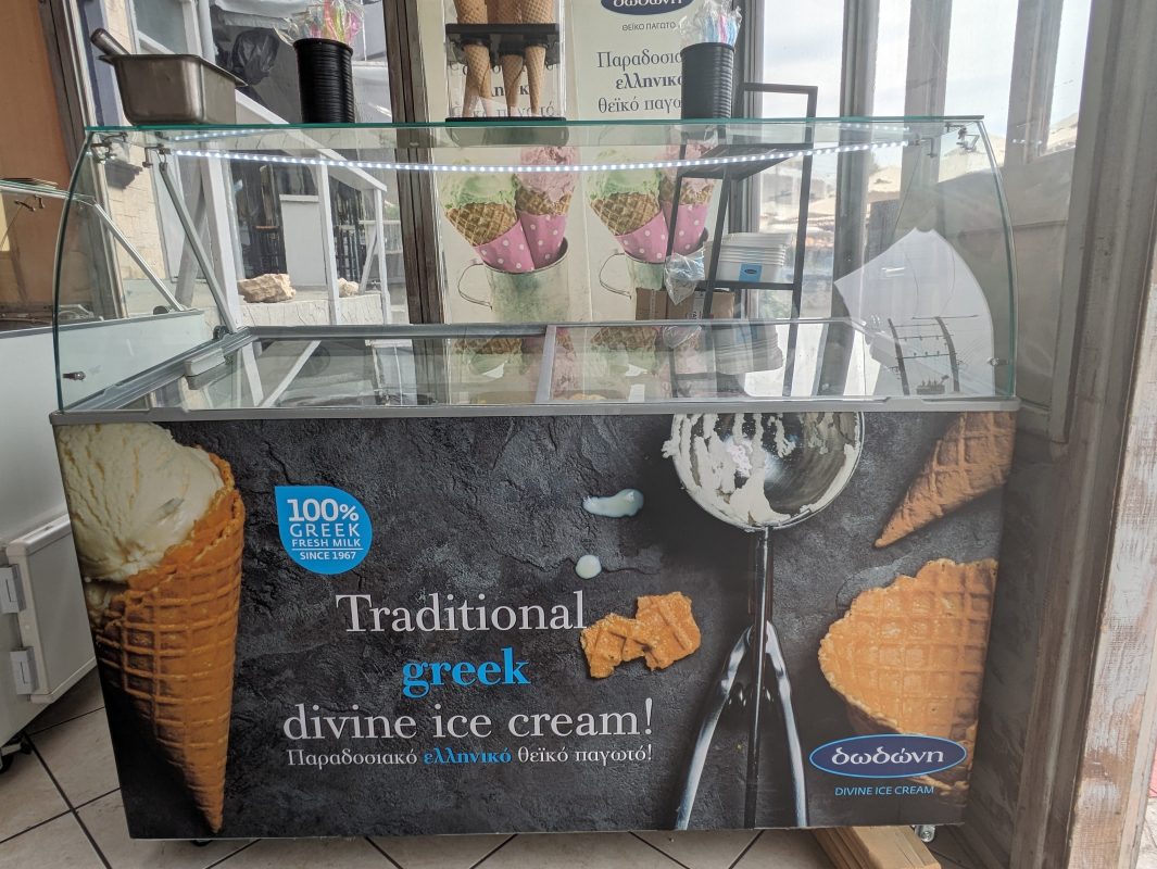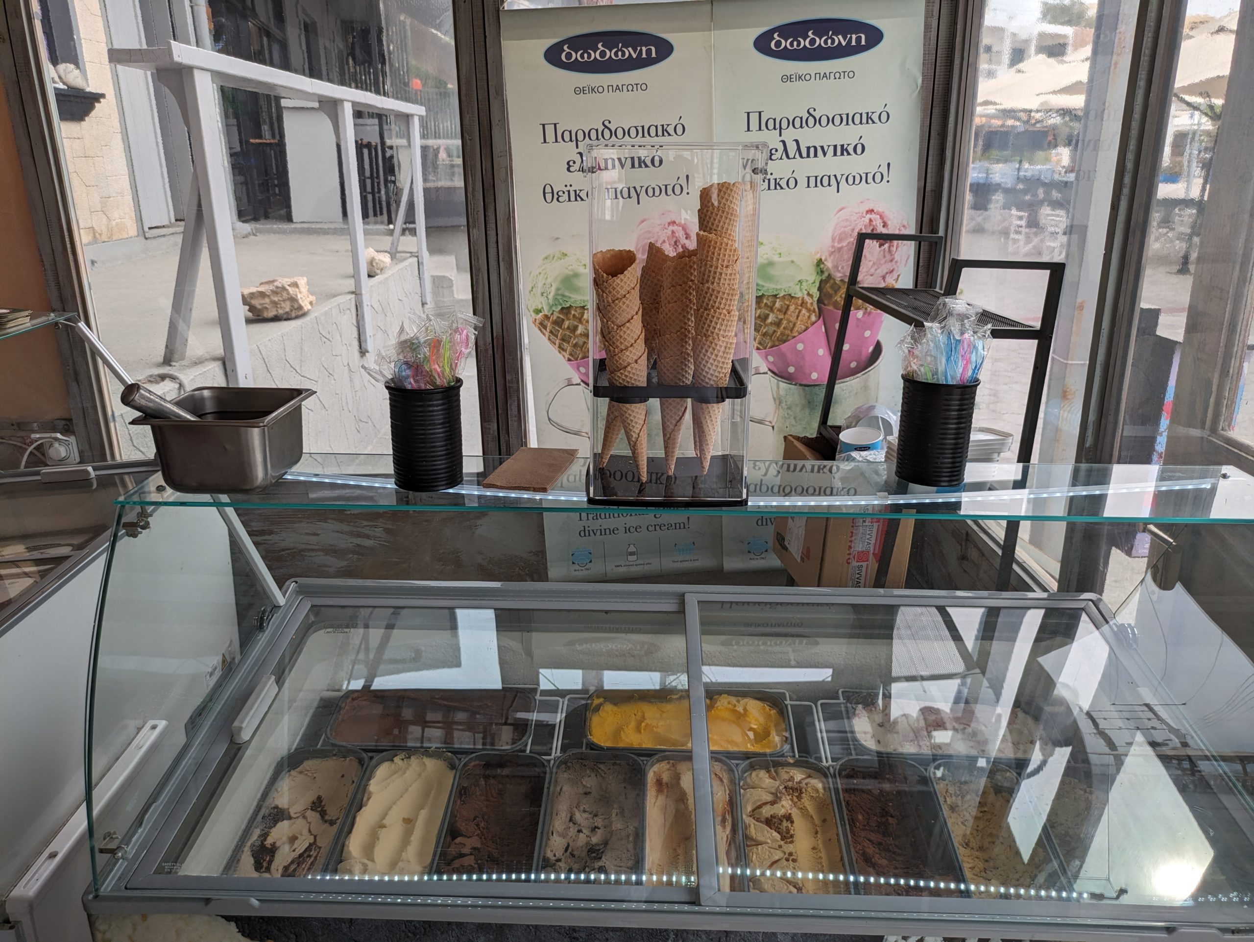 Oh — and if you’re craving something sweet to cool off after your meal, you’re in luck! This is the only spot in Souvala where you’ll find Dodoni ice cream in dozens of flavors!